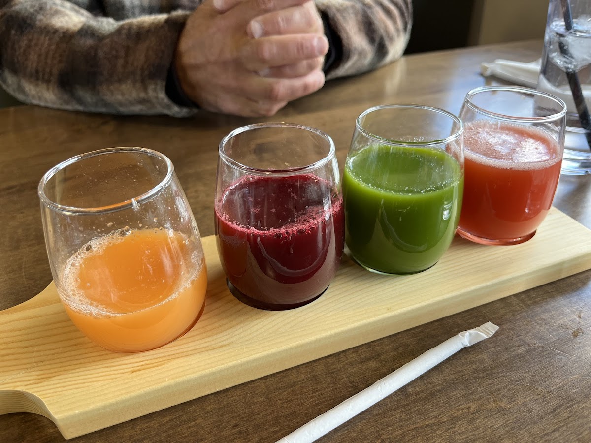 Food was fantastic! We had a burger and sweet potato fries and a chicken, bacon salad. We also got the juice flight. Restaurant is lovely and clean, service wonderful and food came fast. The only disappointment was that we were excited to go eat breakfast in the morning and saw they are closed on Sunday. We will definitely be eating here again and sending friends this way. Thank you for a delicious meal